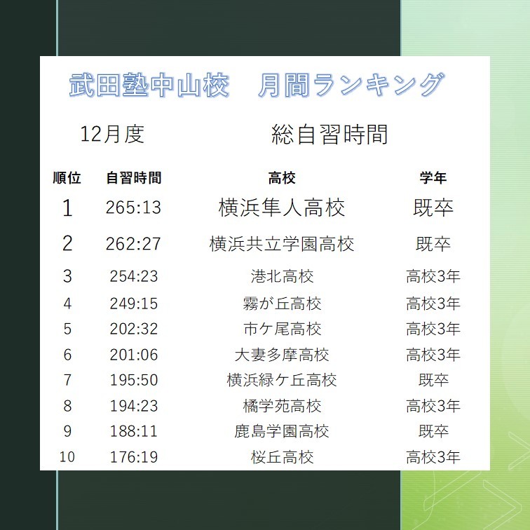 2025年12月総自習時間
