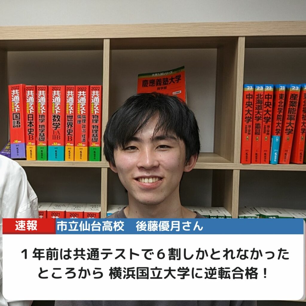 後藤くんが横浜国立大学に合格するだけの実力があることはずっとわかっていました。この1年間は「いかに実力を出し切るか」の試行錯誤の連続でしたね。
